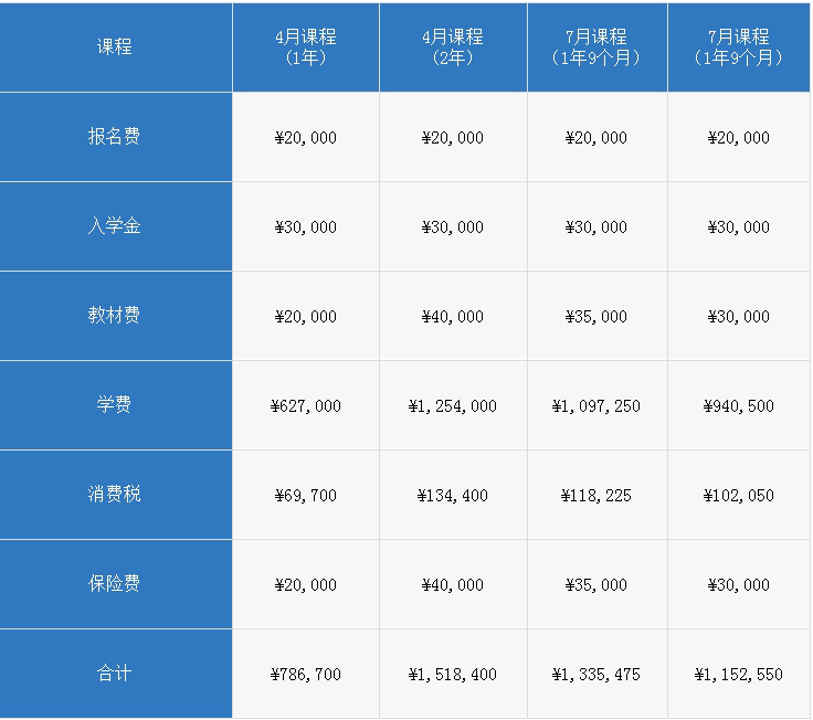 4月份入学的2年课程